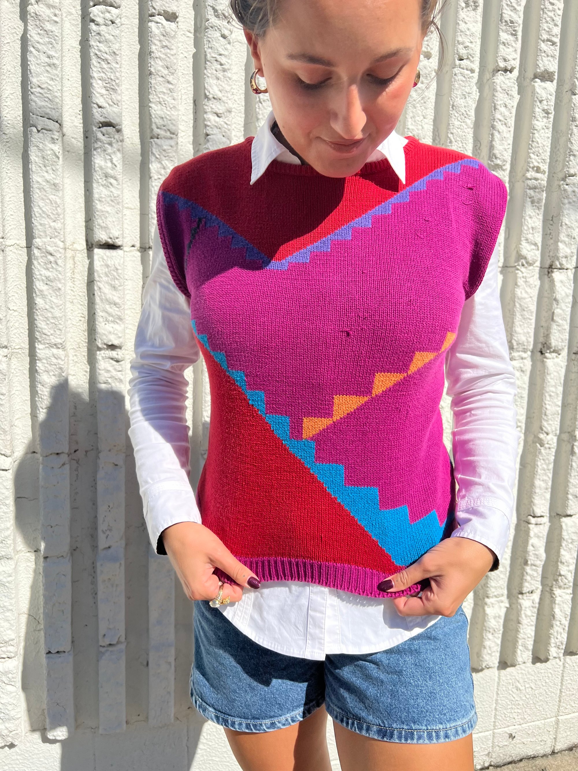 Put on your "Sunday Best" with this vintage, 'Jeanne Pierre' sweater vest. Layer with a button down for a more collared look.